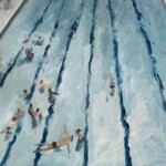 Les reflets de la mer et des piscines permettent de perdre le corps du nageur, comme on perd la figuration dans la matière picturale. L’eau devient non plus un reflet ou une transparence, mais une matière déformante, comme une parabole de la peinture.