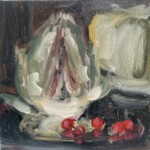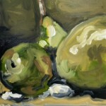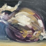 Avec de grands formats à l’huile sur toiles, les natures mortes représentées font référence à l’histoire de l’art à travers des détails «surdimensionnés », agrandis, et renvoient à la peinture de vanité. Ou comment la nature morte parle de vie, de mort, d’ombre et de lumière…